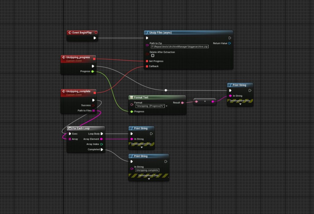UZipTask* Task = UArchiveManagerBPLibrary::UnzipFilesAsync(